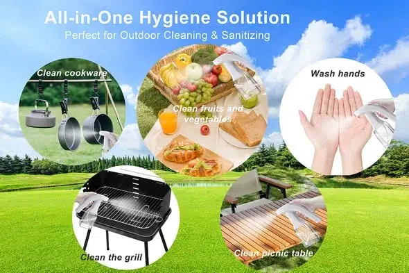 Our Ozone Water Spray Bottle is your all-in-one outdoor hygiene solution. From cleaning cookware, grills, and picnic tables to rinsing fruits and vegetables or sanitizing hands, it’s ready whenever you need it. Simply fill it with tap water and instantly generate powerful ozone water—no chemicals required.